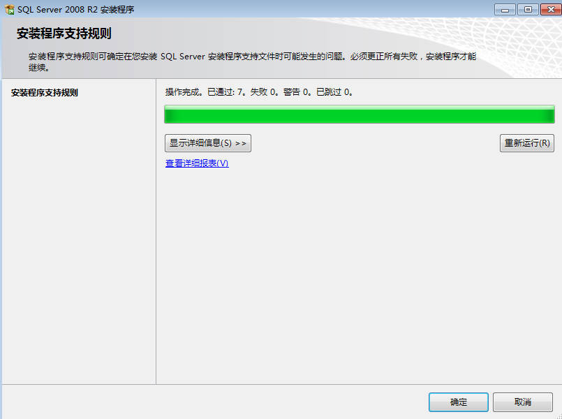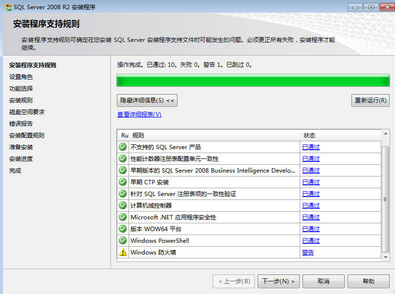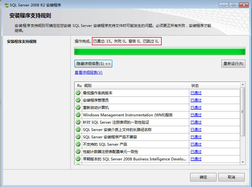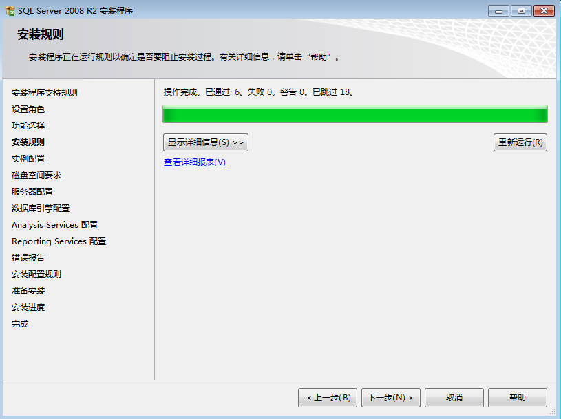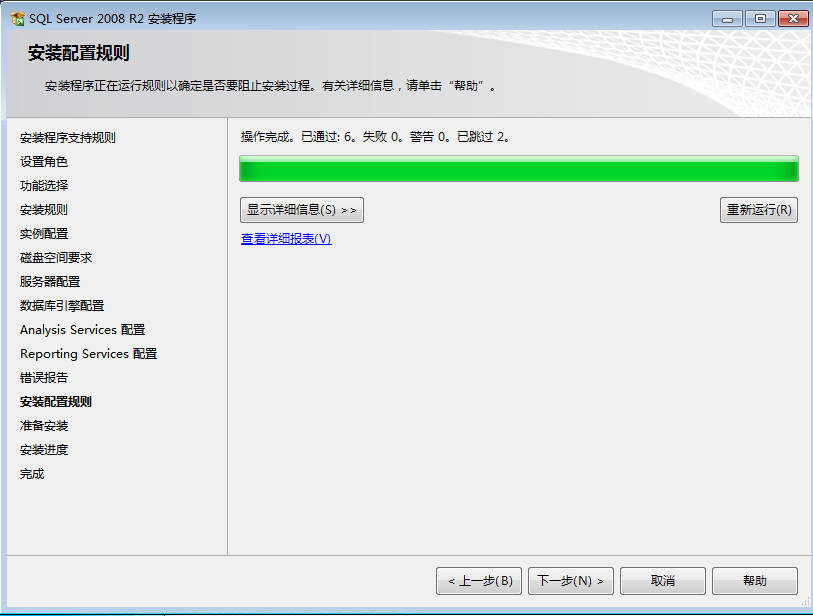 都通过,下一步,如果有失败就点击显示详细信息查看原因