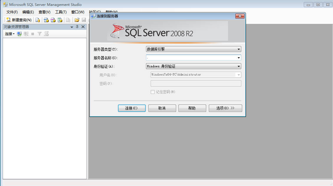 此身份验证模式只需在服务器名称处输入英文模式下的点 .