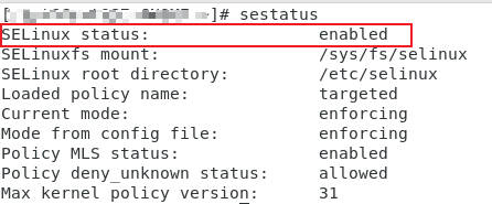 显示enabled就说明SELinux是开着的,我们需要关掉。